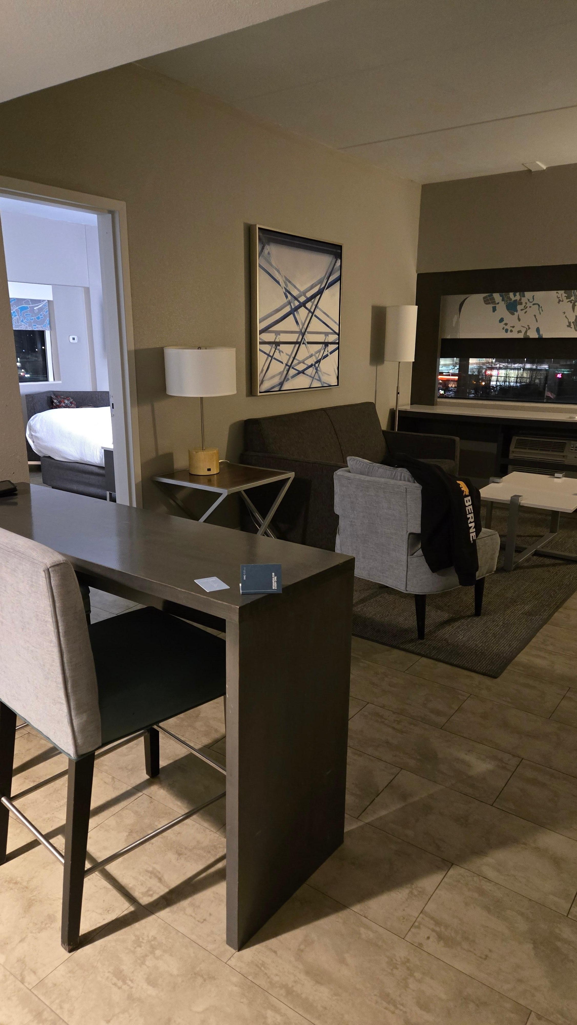 Was a great night, clean, front desk staff were friendly… my only complaint would be the housekeeping staff started knocking and came straight in our room at 8am. He said, “housekeeping, it’s time to check out!” We were still sleeping. We weren’t planning to check out until closer to check out. He knocked again at 9:45am. Checkout wasn’t until 11am, so I didn’t like that start to our morning being awakened with a guy in our room.