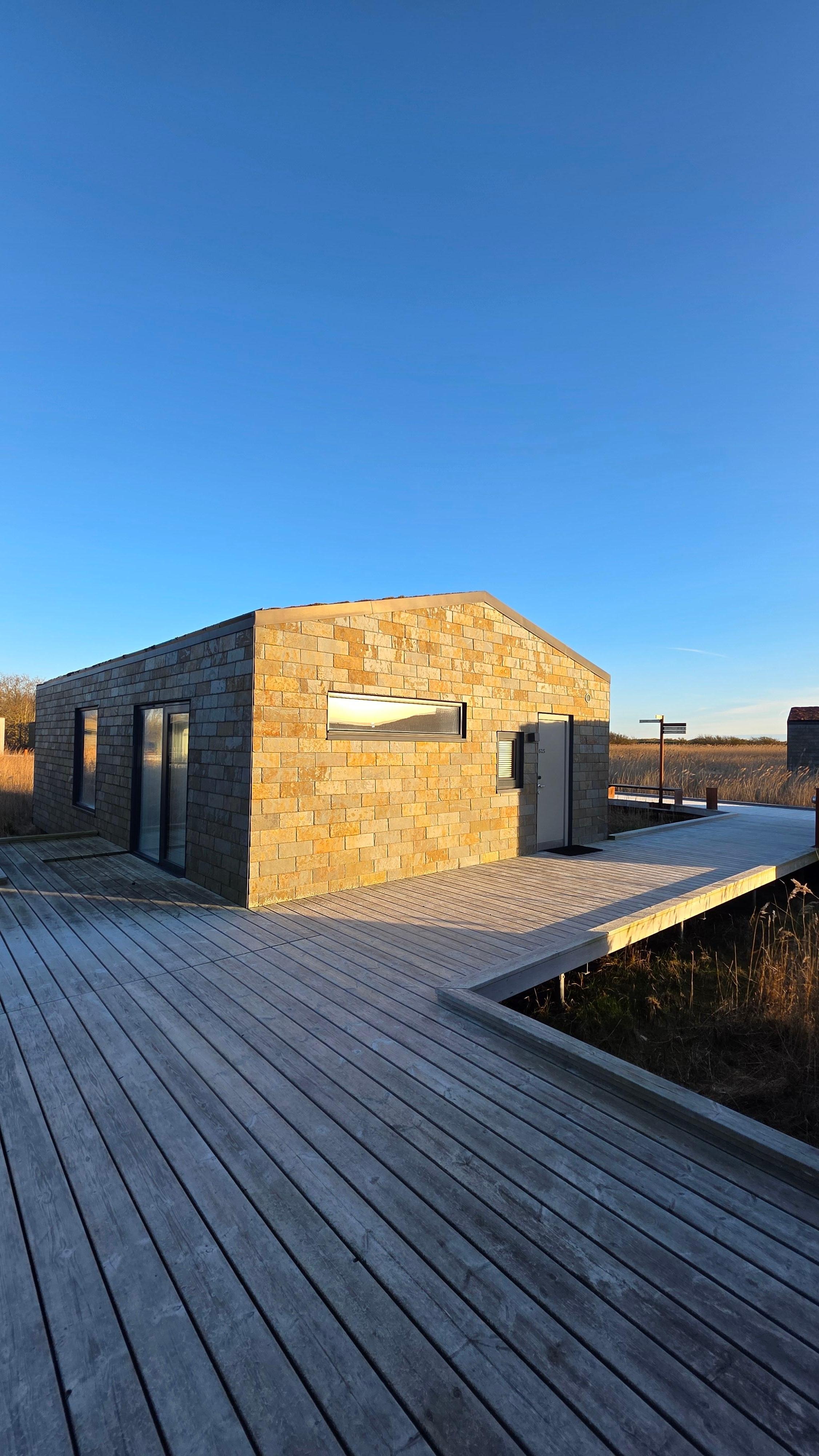 Kunne jeg give 6 stjerner ville jeg gøre det. Helt fantastisk sted der går i et med naturen. De brun-gule skifferbeklædte hytter går i et med de høje sov som hotellet ligger i blandt. Her er meget fredfyldt om man vækkes til gæssenes skrappen og sivenes svejen i vinden. Hytterne var meget rene og der var et fint te-køkken, rummeligt badeværelse dejlige senge og en sofa og udgang til terrasse. Morgenmaden var lækker med alt hvad man kan tænke sig. Man kan låne cykler hvis man vil en tur til Rødby Havn. Jeg kommer helt sikkert igen 😀