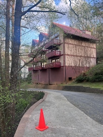 Drive up to the buildings was a little scary esp in the dark when we arrived but not so bad. Resort is cute, security guy that checked us in (late) was friendly and helpful, enjoyed the space, condo was clean. Decor is outdated and building could use some paint. But had a good stay, would stay here again and would recommend.