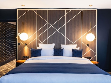 The hotel is right downtown on the edge of the pedestrian zone and close to the castle. This also means you have to park in the street or in the public underground garage across the street and you hit quite some traffic going out early. The room was generous and clean, the bed was comfortable. The window did not isolate well, and the room was uncomfortably cold on arrival and turning the heat up to 21° meant a noisy fan blowing. The bathroom had only a narrow towel rack and a single large knob near the shower that was too large to thread through the loop in the towel. So for all that reuse your towels, two towels simply glid to the floor from that large, slippery know. There was also not a single electrical outlet, and very few in the room which were all in use and near the floor. Combine that with the short and stiff cable of the hair dryer, and I ended up blow drying in a dark corner with no mirror and nearly kneeling.