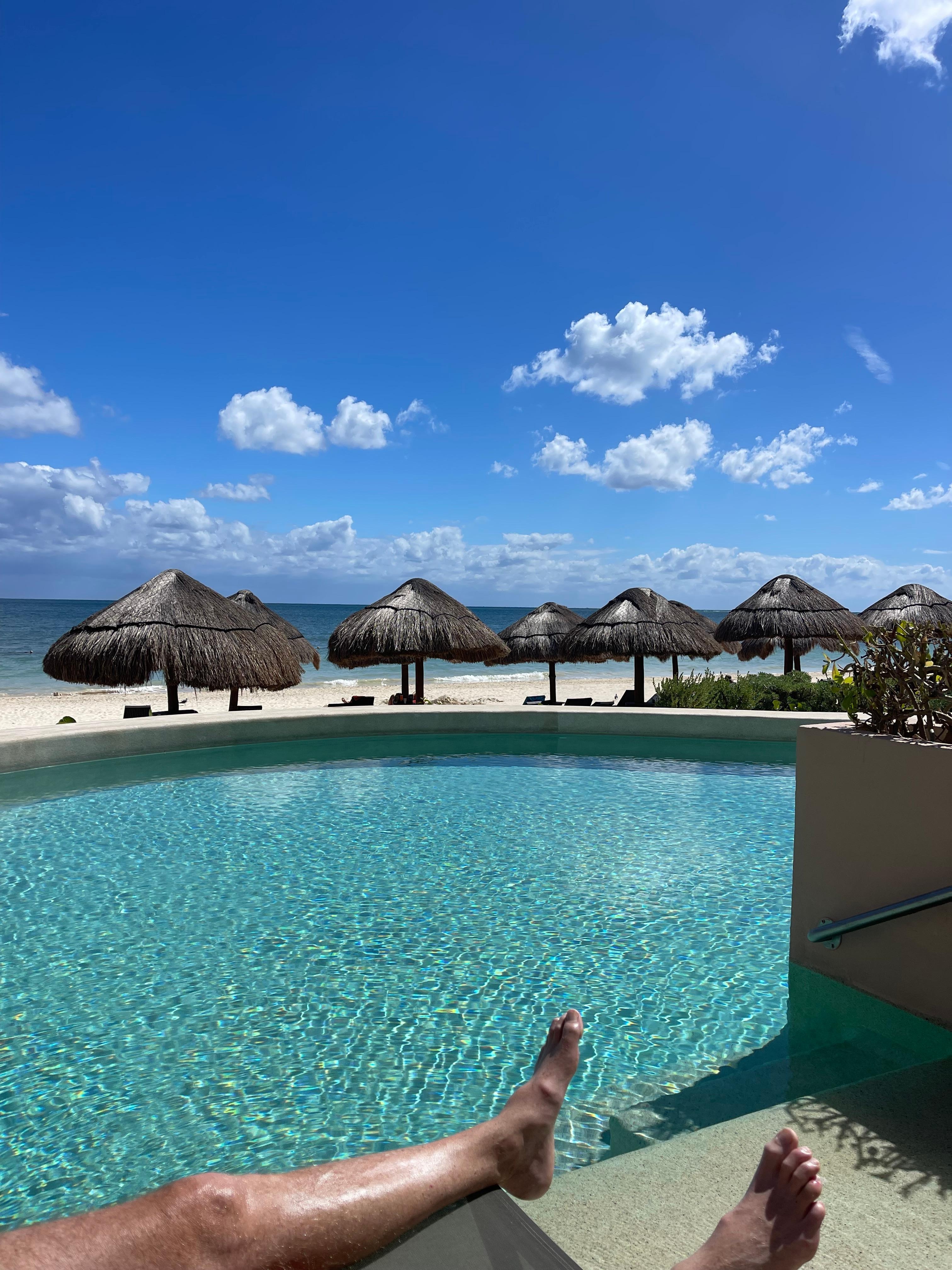 We had a room right by the beach bar, a swim out and view of the ocean, so it was perfect. The walk to the Adult pool was not far. The property is very large ! Lots going on all the time! The room was clean and the food was very good. The service at the big pool was slow with so many people there. The adult pool was nice and quiet to read or nap and the service was great! In the restaurants they offered blankets if you were cold. The evenings were chilly!