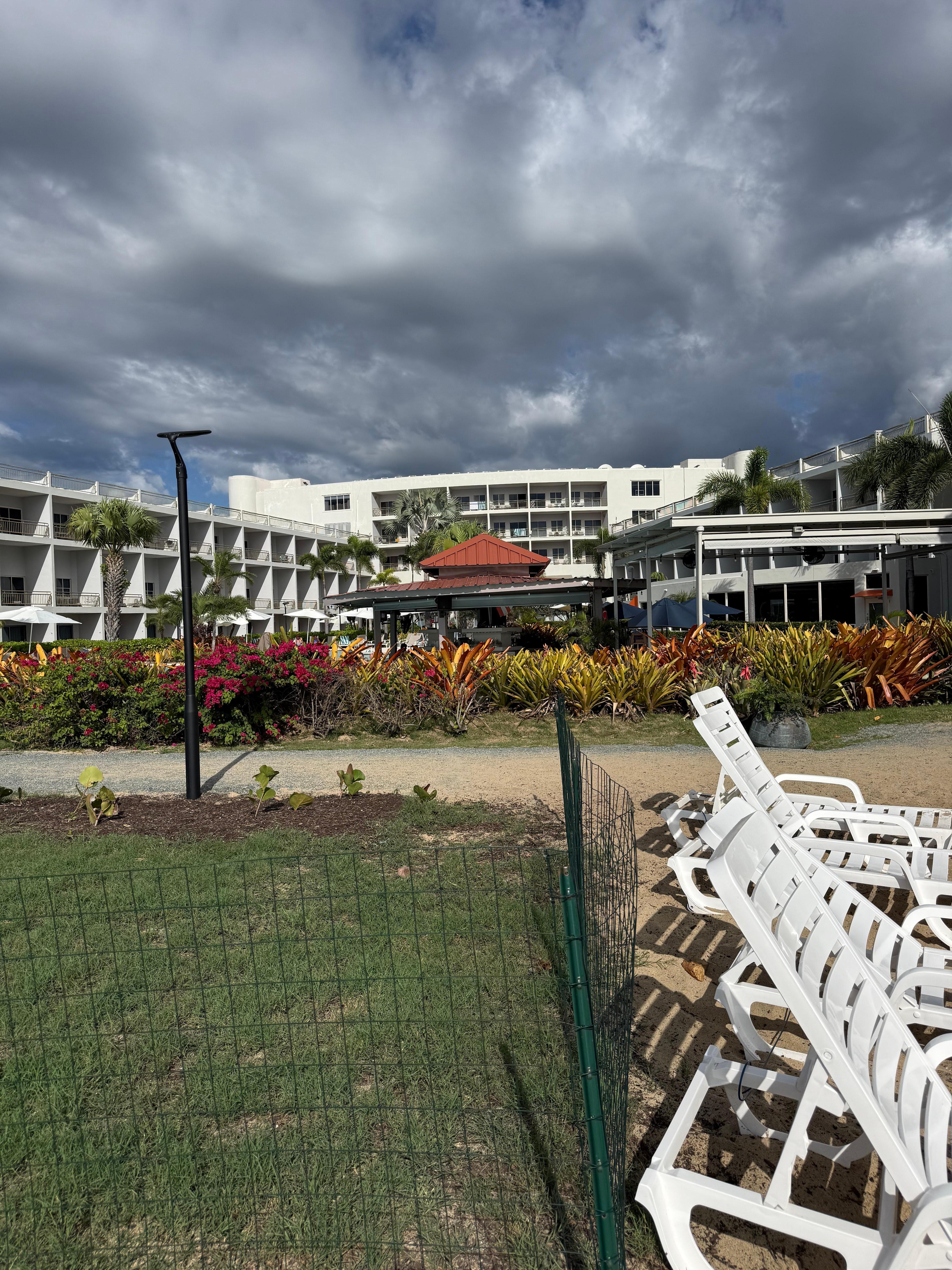 Room was well kept. Facilities are very pretty and tropical. Right on the beach and views in most rooms it seems. Pool food and beverage service is great. Breakfast restaurant was solid also. Overall a really great resort. Very central to all Rincon activities. As noted by some other reviewers the TV service is not great. No microwave in room only small fridge. No gym either but there’s a day pass gym a few minutes down the road. I would recommend this place if you’re not super picky or looking for crazy luxurious. It’s a solid choice overall.